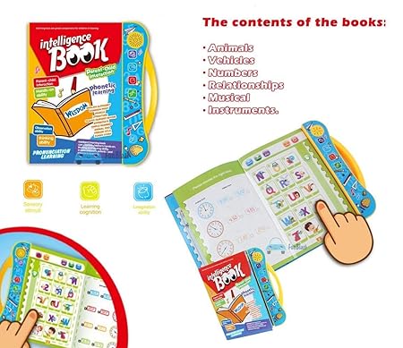 COLORFUL AUDIO INTERACTIVE LEARNING BOOK: Kidzz Phonetic Learning book assists kids in learning spelling and alphabets through many techniques. Each page contains a button; in order to open the page, simply press the switch. A youngster may hear the letters, the word, and the spelling when they press the picture in the book.