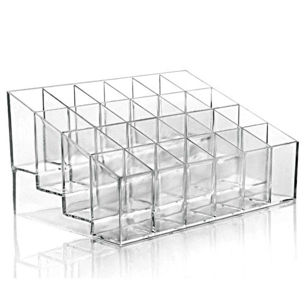 Makeup Organizer Holder with 24 Grid Plastic Lipstick Transparent Jewelry Storage Box